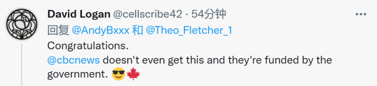 還有人提到加拿大廣播公司(CBC),“祝賀你。CBC甚至都沒獲得這個,他們是由政府資助的!薄