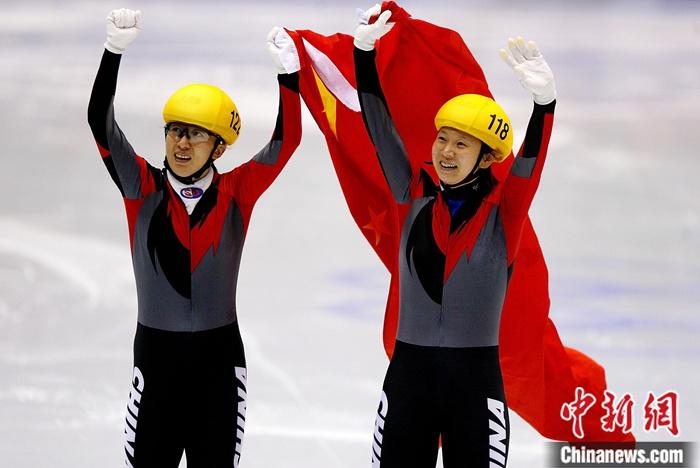 2002年2月16日,美國鹽湖城,2002鹽湖城冬奧會短道速滑女子500米決賽,楊揚(yáng)(左)奪得冠軍。為中國代表團(tuán)實(shí)現(xiàn)冬奧會金牌“零的突破”。 圖片來源:視覺中國