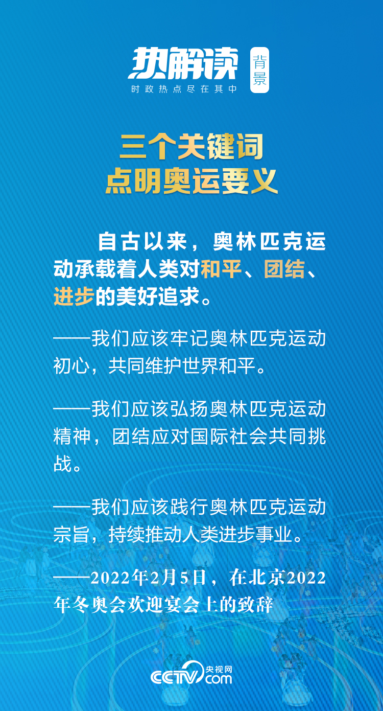 “特別感謝在座的各位朋友克服新冠肺炎疫情帶來的困難和不便,不遠(yuǎn)萬里來到北京,為冬奧喝彩、為中國(guó)加油!绷(xí)近平主席在北京2022年冬奧會(huì)歡迎宴會(huì)上向與會(huì)的貴賓表達(dá)感謝之情。