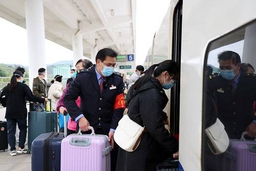南寧局集團(tuán)公司組織車站開辟綠色通道,提前做好其他車次分流工作,優(yōu)化勞力安排,增加進(jìn)站、安檢、檢票、站臺客運(yùn)力量,組織黨團(tuán)員突擊隊(duì)引導(dǎo)返程抗疫人員進(jìn)站乘車,主動幫助搬運(yùn)行李、醫(yī)療器械等物資。列車工作人員加強(qiáng)車廂巡查巡視力度,根據(jù)抗疫人員需求及時(shí)提供溫馨的出行服務(wù)。