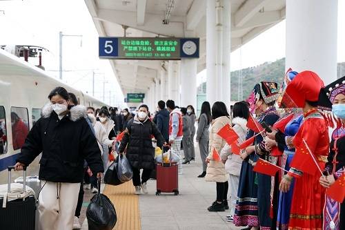 2月16日14時(shí),載有1004名醫(yī)護(hù)人員的D9686次列車從百色市田陽站緩緩開出,2小時(shí)后直達(dá)欽州東站,護(hù)送到百色參與抗疫工作的醫(yī)護(hù)人員安全順利返程。當(dāng)天下午,田東北站還開行2趟往梧州南、桂林北站的抗疫人員返程專列。