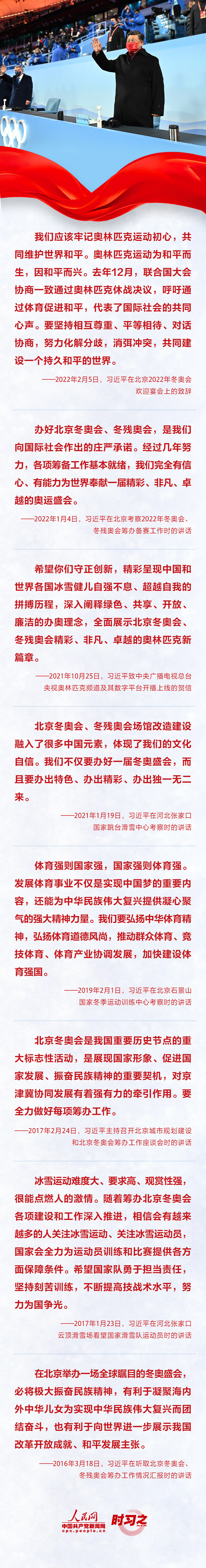 2022年2月20日晚,2萬盞燈籠點(diǎn)亮國家體育場,“中國紅”與“冰雪白”交相輝映,舉世矚目的北京冬奧會在運(yùn)動員們的歡樂聚會中落下帷幕。冬奧競技場上,一個個精彩瞬間、一幕幕動人場景,使人心潮澎湃。同筑冰雪夢,一起向未來。讓我們重溫習(xí)近平的鏗鏘話語,共同感受體育傳遞出的強(qiáng)大精神力量。
