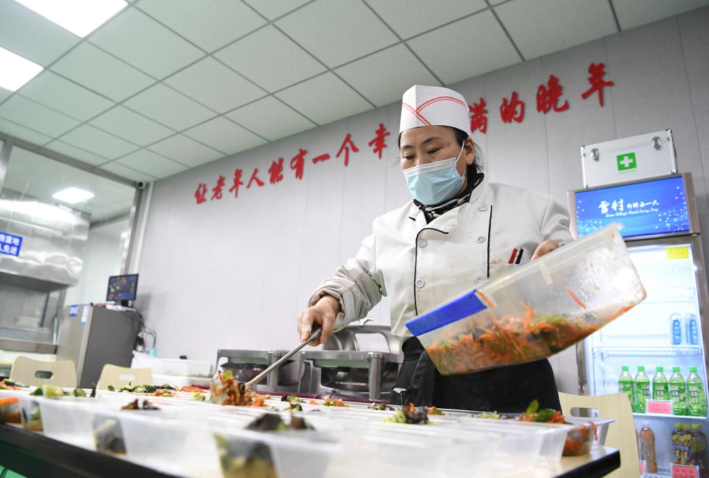 河北省廊坊市廣陽(yáng)區(qū)上善頤園小區(qū)社區(qū)食堂工作人員在長(zhǎng)者餐區(qū)工作(2022年1月4日)。新華社發(fā)(孫寶宇 攝)