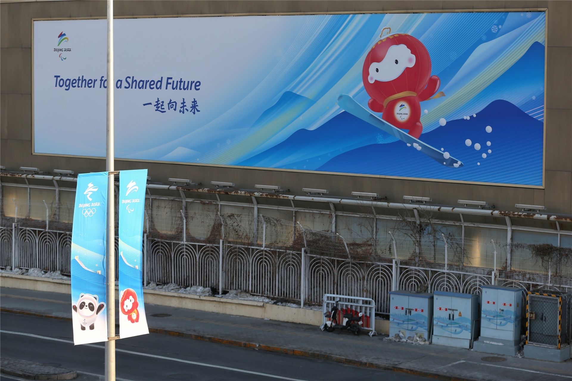 2月24日,北京相關(guān)道路景觀已更換為冬殘奧會(huì)標(biāo)志、吉祥物等。