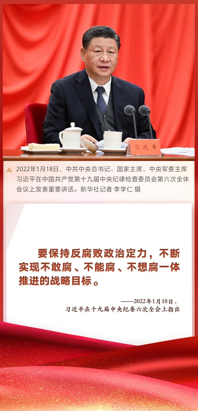 “要保持反腐敗政治定力,不斷實(shí)現(xiàn)不敢腐、不能腐、不想腐一體推進(jìn)的戰(zhàn)略目標(biāo)!敝泄仓醒肟倳、國(guó)家主席、中央軍委主席習(xí)近平在十九屆中央紀(jì)委六次全會(huì)上發(fā)表重要講話,深刻總結(jié)新時(shí)代黨的自我革命的成功實(shí)踐,深刻闡述全面從嚴(yán)治黨取得的歷史性、開創(chuàng)性成就,產(chǎn)生的全方位、深層次影響,對(duì)堅(jiān)持不懈把全面從嚴(yán)治黨向縱深推進(jìn)、迎接黨的二十大勝利召開作出戰(zhàn)略部署。