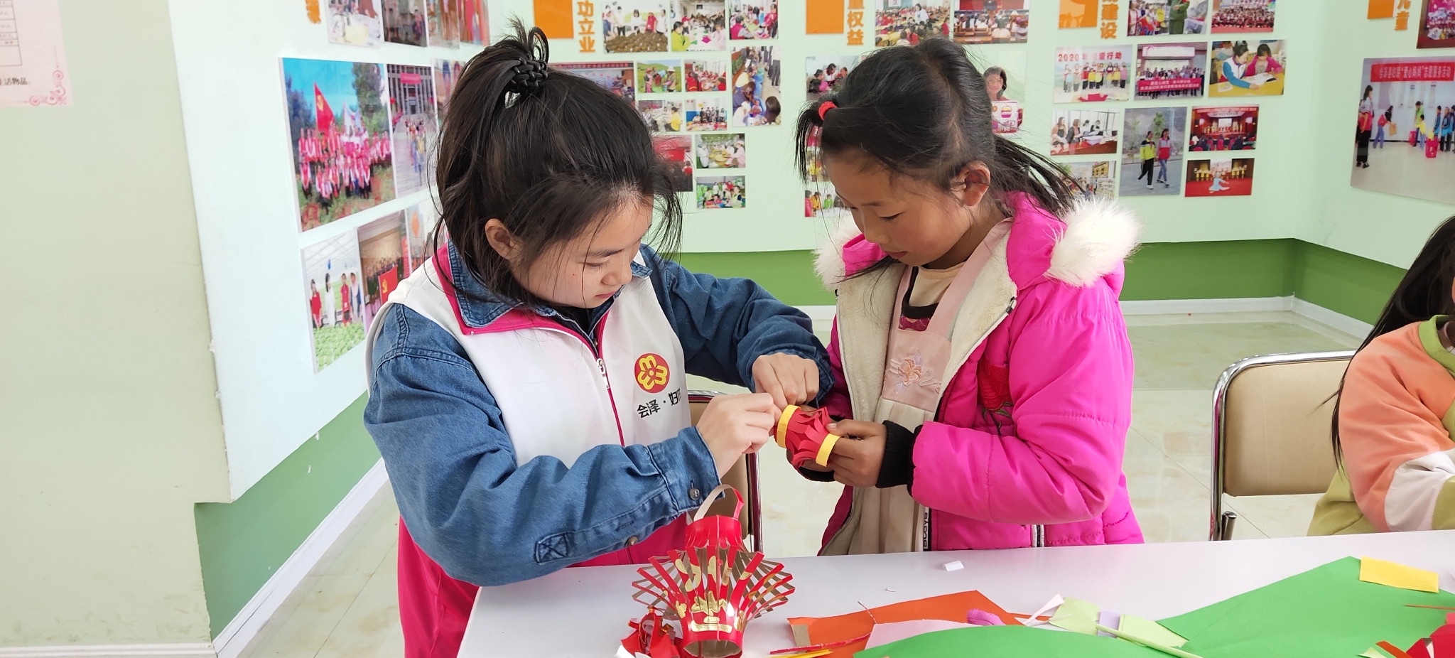 云南會澤新城婦聯(lián)項(xiàng)目點(diǎn)的志愿者正教授孩子做手工藝品。(受訪者供圖)