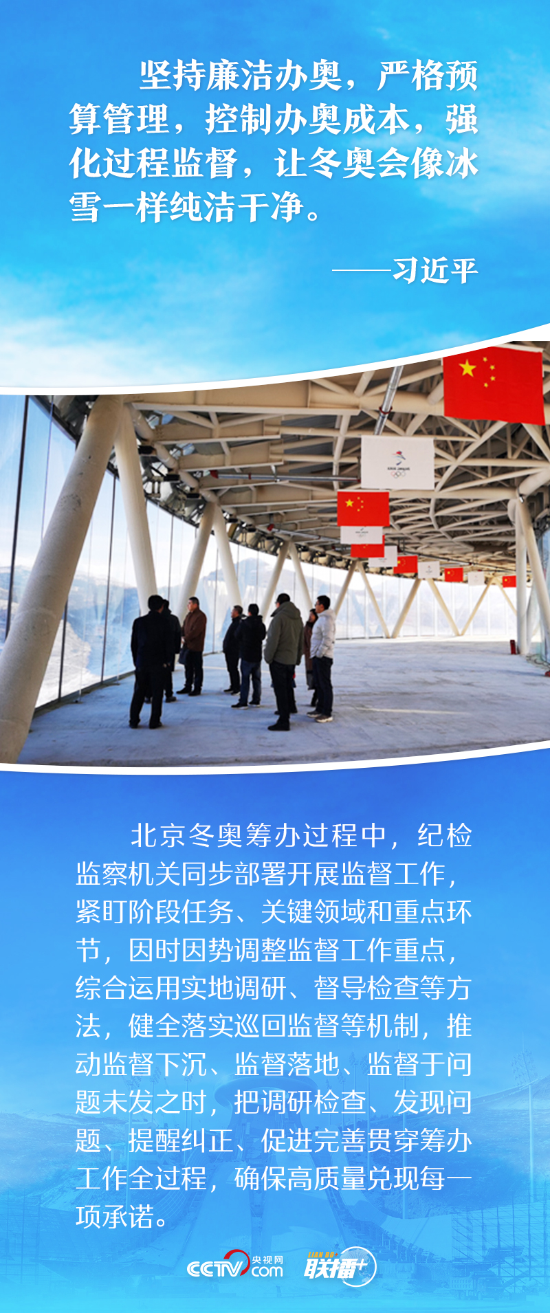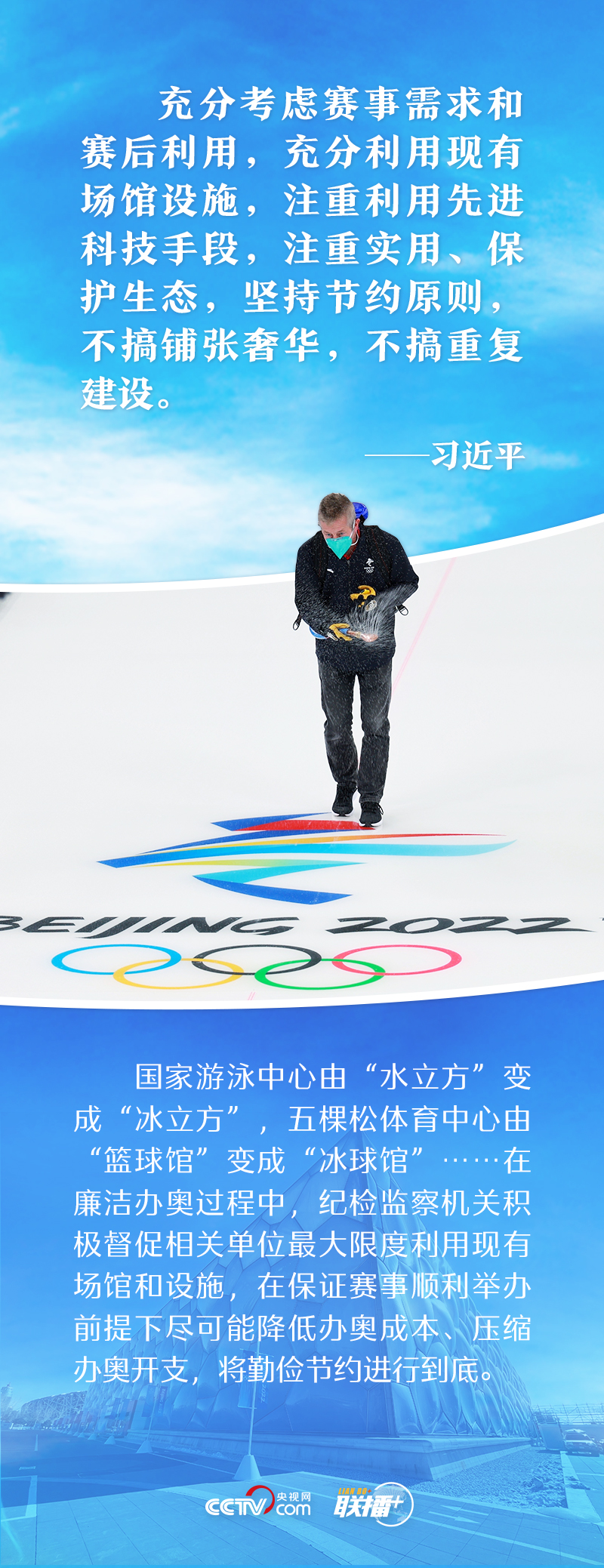 “能借不租,能租不買”極大地節(jié)省了物資采購成本;整合需求、減少流轉(zhuǎn)環(huán)節(jié),最大限度壓縮權(quán)力尋租空間,提高廉潔透明度;堅持對興奮劑問題零容忍......廉潔辦奧理念貫穿于北京冬奧會籌備、運行的各個方面。那么,這些具體措施都是如何落實的呢?央視網(wǎng)《聯(lián)播+》帶您一起了解。