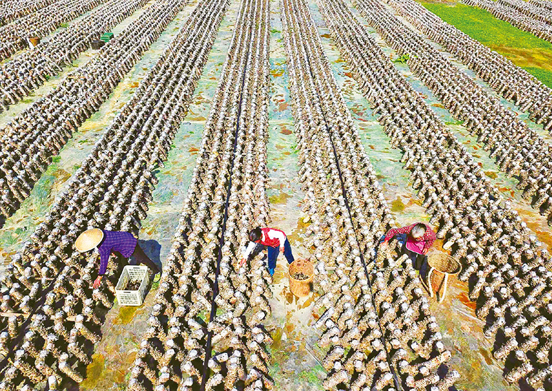 近年來,貴州省圍繞產(chǎn)業(yè)選擇、培訓農(nóng)民、技術(shù)服務(wù)、資金籌措、組織方式、產(chǎn)銷對接、利益聯(lián)結(jié)、基層黨建等“八要素”,通過“減、融、服”創(chuàng)新推進農(nóng)村產(chǎn)業(yè)結(jié)構(gòu)調(diào)整,既帶動了農(nóng)戶增收,也推動了特色產(chǎn)業(yè)做大做強。圖為農(nóng)民在貴州省銅仁市萬山區(qū)敖寨鄉(xiāng)中華山村的食用菌基地里采摘木耳。 新華社記者 楊文斌/攝