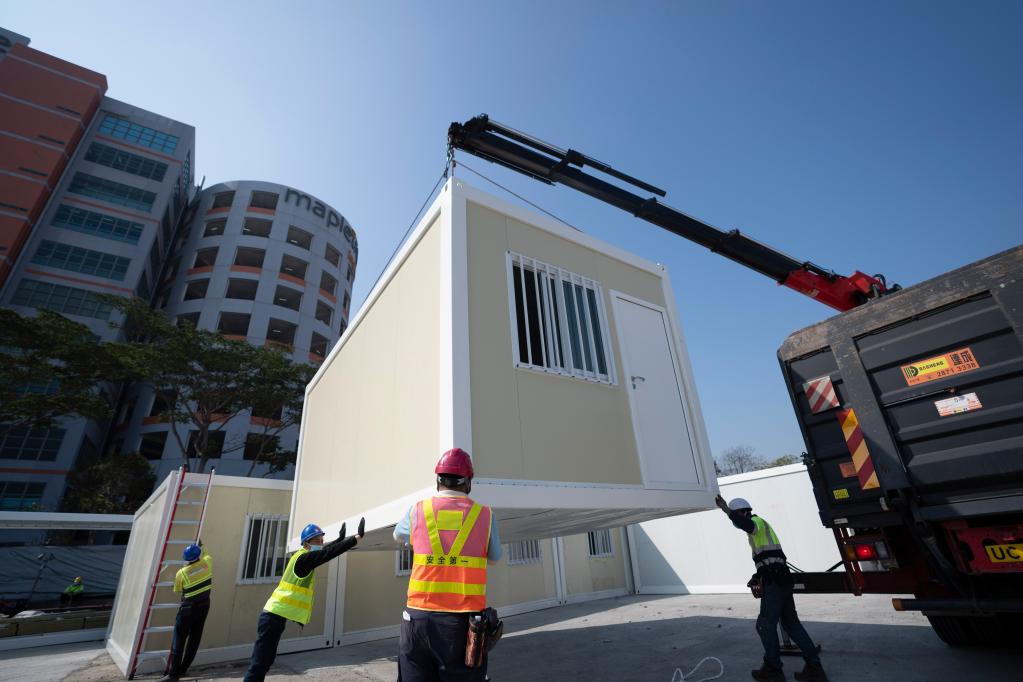 2月26日,工作人員在青衣方艙醫(yī)院施工。新華社記者 呂小煒 攝