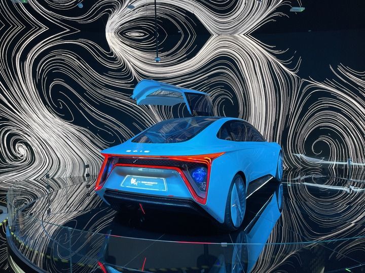 這是2021年10月1日拍攝的世博會中國館未來概念汽車板塊的展覽。新華社記者 蘇小坡 攝