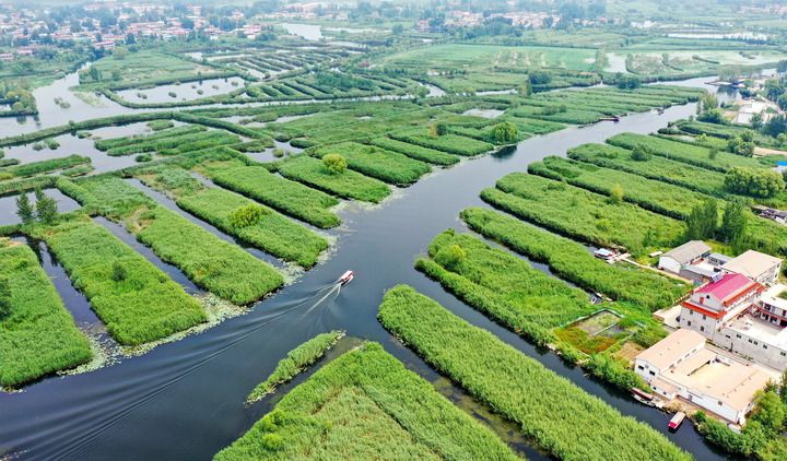 2021年8月14日,船舶在雄安新區(qū)白洋淀內(nèi)行駛。新華社記者 牟宇 攝