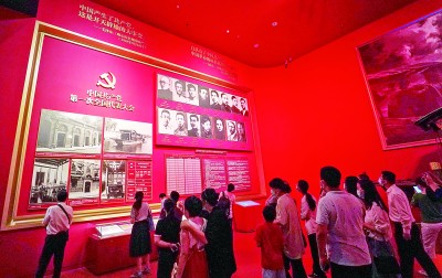觀眾在中國(guó)共產(chǎn)黨歷史展覽館參觀。新華社發(fā)