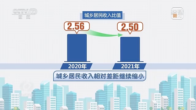 農(nóng)村居民收入增長快于城鎮(zhèn)居民。城鄉(xiāng)居民收入比值由上年的 2.56 縮小至 2.50,城鄉(xiāng)居民收入相對差距繼續(xù)縮小。