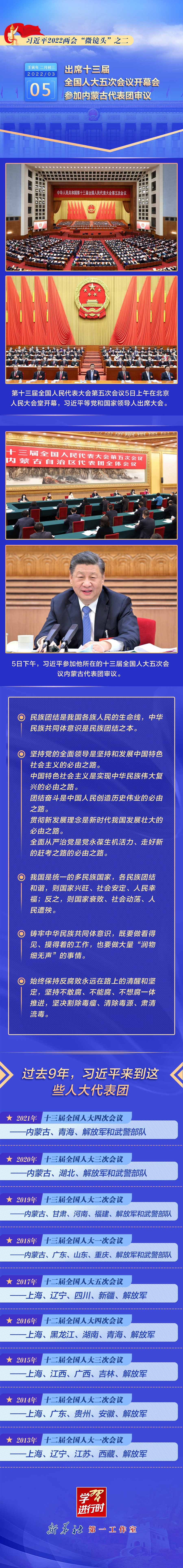 習近平2022兩會“微鏡頭”之二:3月5日,出席人代會開幕會 參加內(nèi)蒙古代表團審議