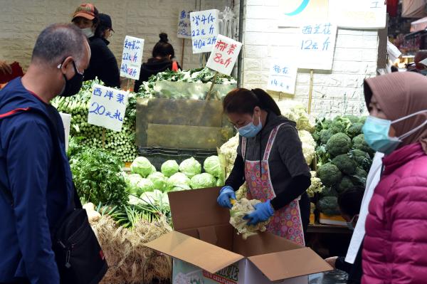 這是在香港荃灣拍攝的一處蔬菜攤位(2月28日攝)。新華社記者盧炳輝攝
