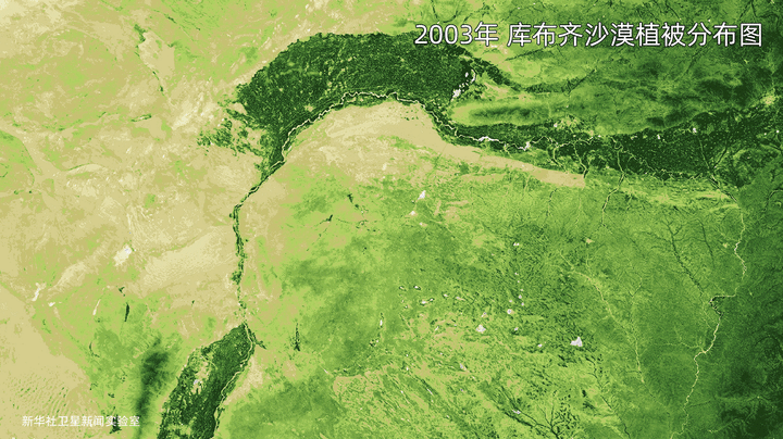 這是庫布齊沙漠2003年和2021年的衛(wèi)星植被分布圖對比。