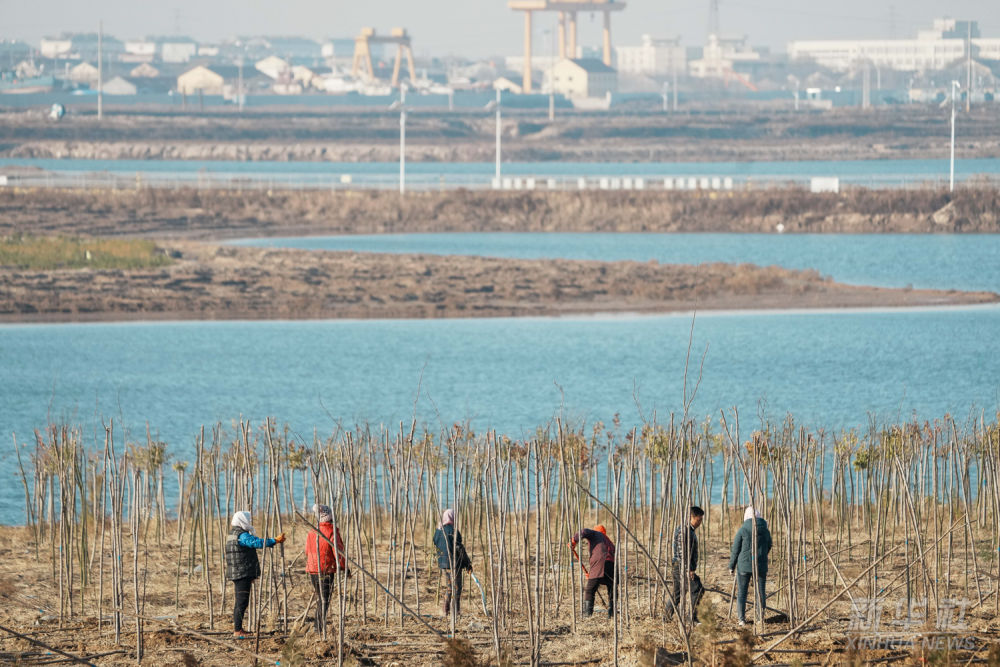 村民們在山東壽光羊口港種植樹木(2021年12月2日攝)。