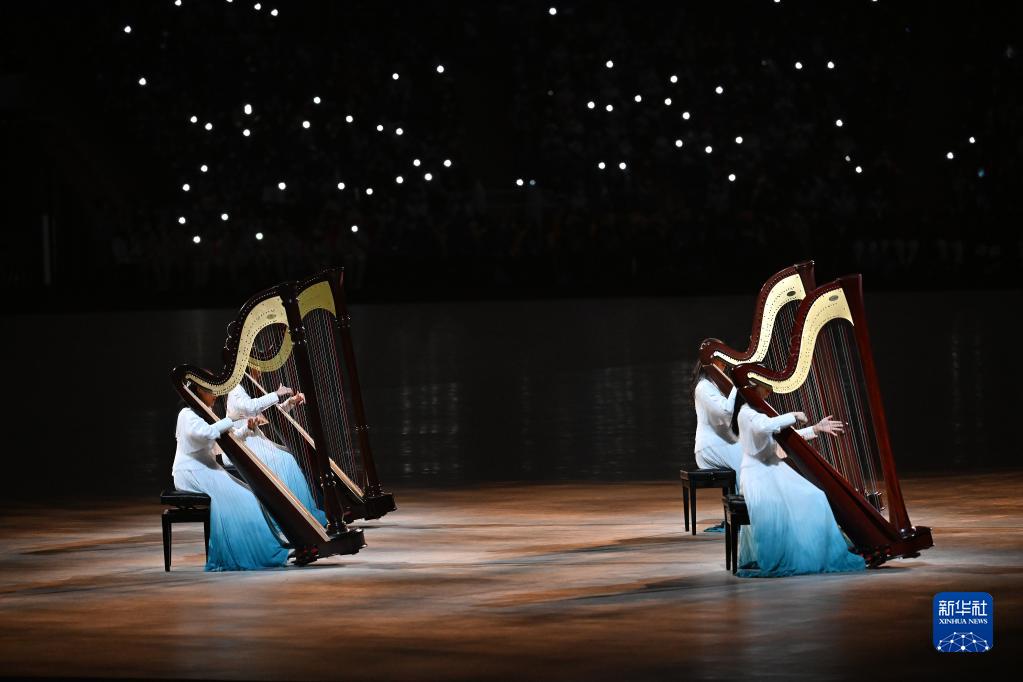 在開場(chǎng)的《高光時(shí)刻》環(huán)節(jié),伴隨著4位豎琴演奏者演繹的德國(guó)作曲家門德爾松創(chuàng)作的《乘著歌聲的翅膀》,冬殘奧會(huì)開幕后9天賽事的精彩瞬間在“留聲機(jī)”中浮現(xiàn)。沈晨說(shuō):“很多殘疾人雖然身體殘缺,但是心在飛翔,所以我們選擇了這首《乘著歌聲的翅膀》。”