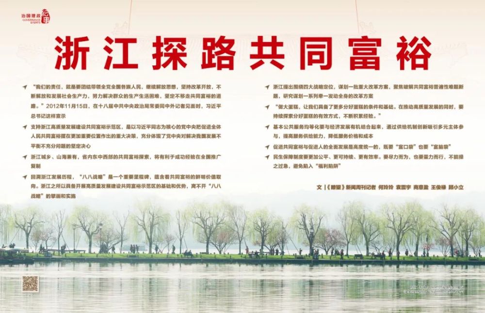 正努力成為全面展示中國特色社會主義制度優(yōu)越性重要窗口的浙江,站在新起點上,承擔著通過實踐進一步豐富共同富裕的思想內涵、率先破解發(fā)展不平衡不充分問題等重大使命。朝著建設高質量發(fā)展高品質生活先行區(qū)、城鄉(xiāng)區(qū)域協(xié)調發(fā)展引領區(qū)、收入分配制度改革試驗區(qū)、文明和諧美麗家園展示區(qū)的目標,浙江將乘勢而上、久久為功,為全國實現(xiàn)共同富裕先行探路。