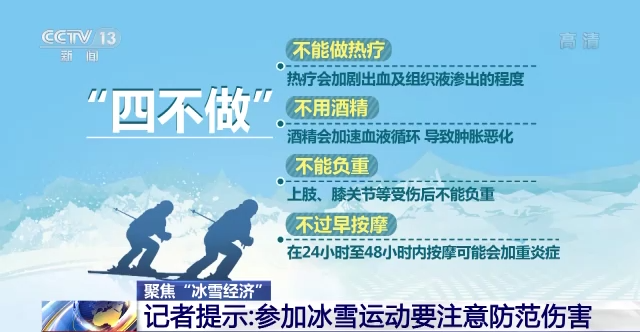 相比一般運(yùn)動和旅游等,冰雪運(yùn)動給人們帶來激情體驗(yàn)的同時(shí),蘊(yùn)含的風(fēng)險(xiǎn)也更高。因此,參加冰雪運(yùn)動更需要做好防護(hù),一旦發(fā)生了損傷,要牢記“五做四不做”。
