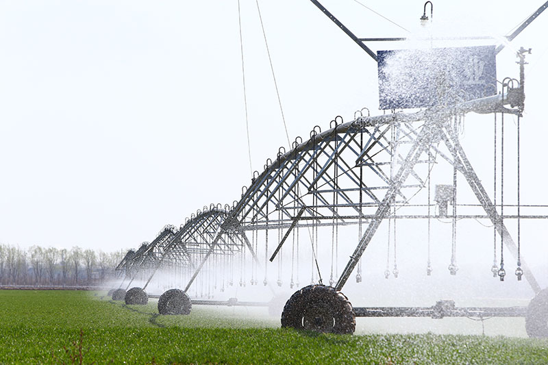 2021年2月23日,在河南省鶴壁市?h一片高標準農田里,自走式噴灌機在為小麥澆水。