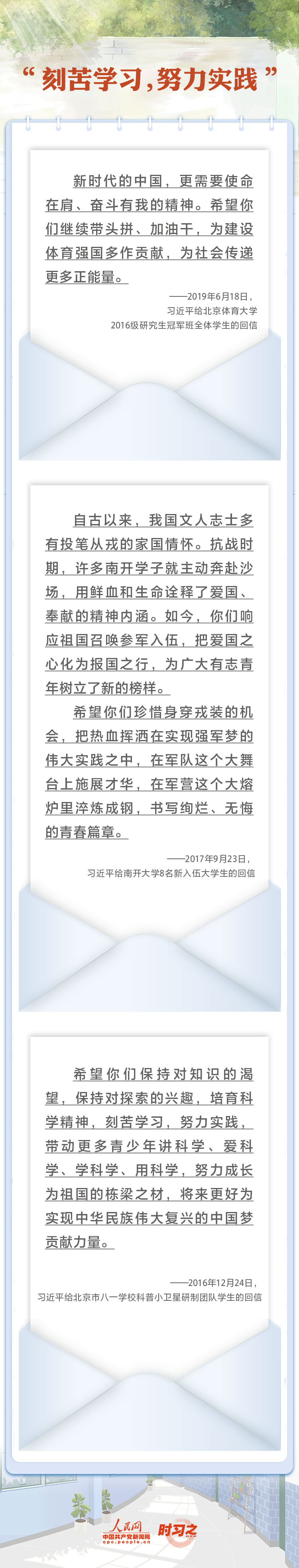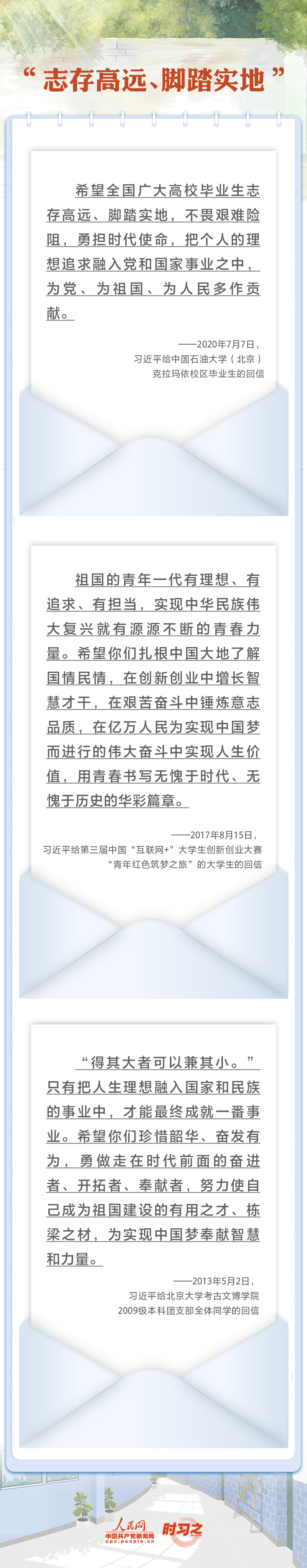 無論是小學生還是大學生,他們都是未來的建設(shè)者、是祖國的希望,習近平對他們的成長格外關(guān)心。黨的十八大以來,習近平總書記曾多次給學生們回信,表達對祖國未來建設(shè)者的關(guān)懷與希冀。
