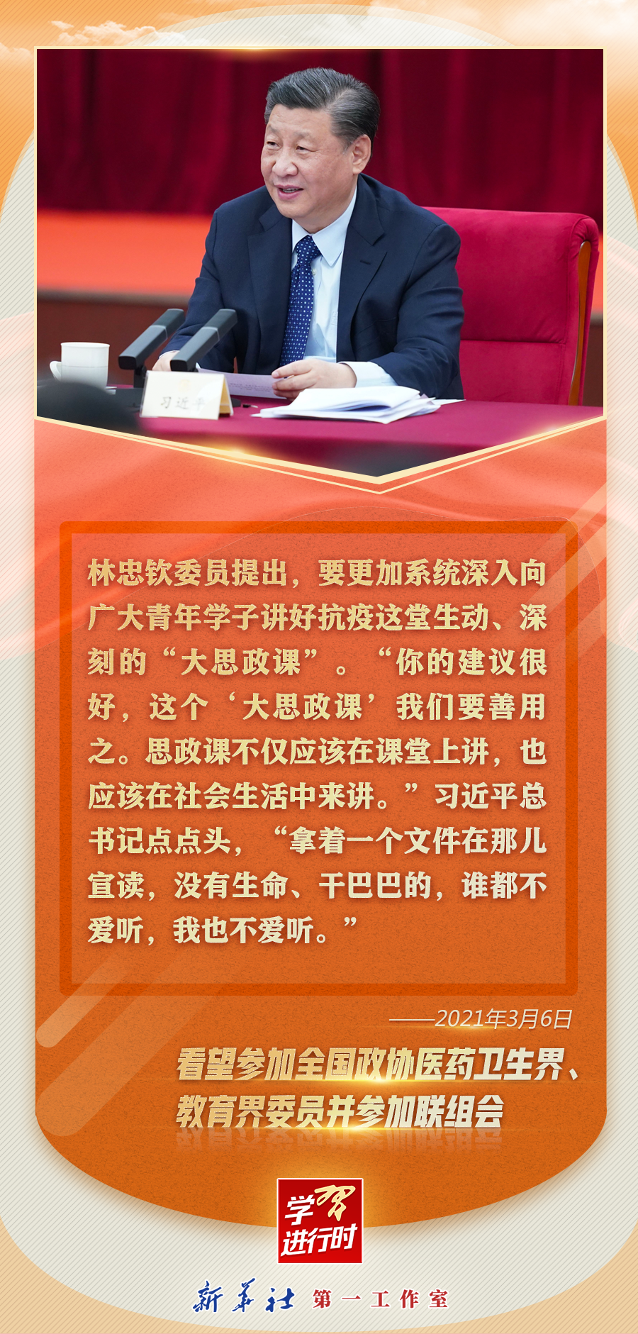 ——2021年3月6日,在看望參加全國(guó)政協(xié)十三屆四次會(huì)議的醫(yī)藥衛(wèi)生界、教育界委員并參加聯(lián)組會(huì)時(shí)的講話