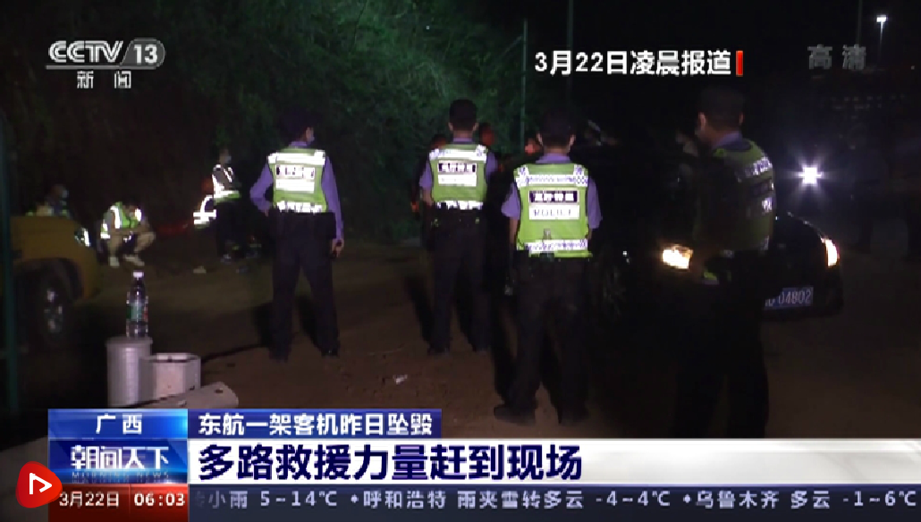 央視網(wǎng)消息:3月21日14時(shí)38分許,東方航空公司MU5735航班執(zhí)行昆明—廣州任務(wù)時(shí),在廣西梧州市上空失聯(lián)并墜毀。機(jī)上載有乘客123人、機(jī)組人員9人。經(jīng)確認(rèn),墜毀位置為廣西梧州市埌南鎮(zhèn)莫埌村神塘表附近山林,墜機(jī)引發(fā)的森林火災(zāi)當(dāng)天被撲滅。東航客機(jī)墜毀后,國(guó)家民航局啟動(dòng)應(yīng)急機(jī)制,并派出工作組于昨晚抵達(dá)梧州迅速開(kāi)展工作,指導(dǎo)協(xié)助當(dāng)?shù)噩F(xiàn)場(chǎng)救援、善后處置等。