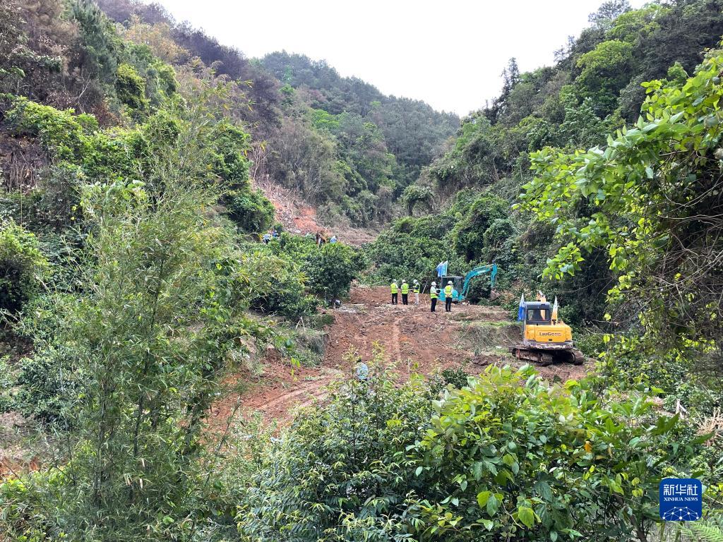 3月22日,在廣西藤縣埌南鎮(zhèn)莫埌村,挖掘機開挖進入東航MU5735客機墜毀事故現(xiàn)場的通道,為后續(xù)工作鋪平道路(手機照片)。新華社記者 周華 攝