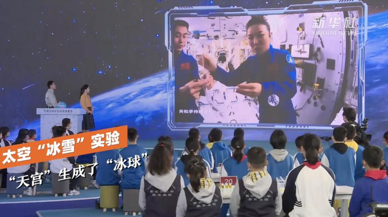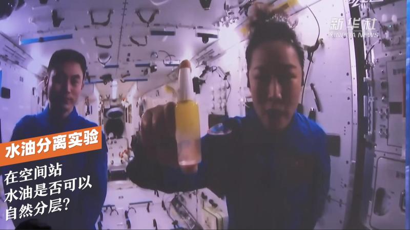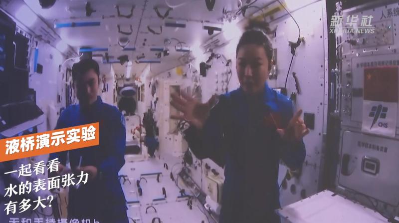在約45分鐘的授課中,航天員相互配合,生動(dòng)演示了微重力環(huán)境下太空“冰雪”實(shí)驗(yàn)、液橋演示實(shí)驗(yàn)、水油分離實(shí)驗(yàn)、太空拋物實(shí)驗(yàn),講解了實(shí)驗(yàn)現(xiàn)象背后的科學(xué)原理,展示了部分空間科學(xué)設(shè)施,介紹了在空間站的工作生活情況。授課期間,航天員通過視頻通話形式與地面課堂師生進(jìn)行了互動(dòng)交流。