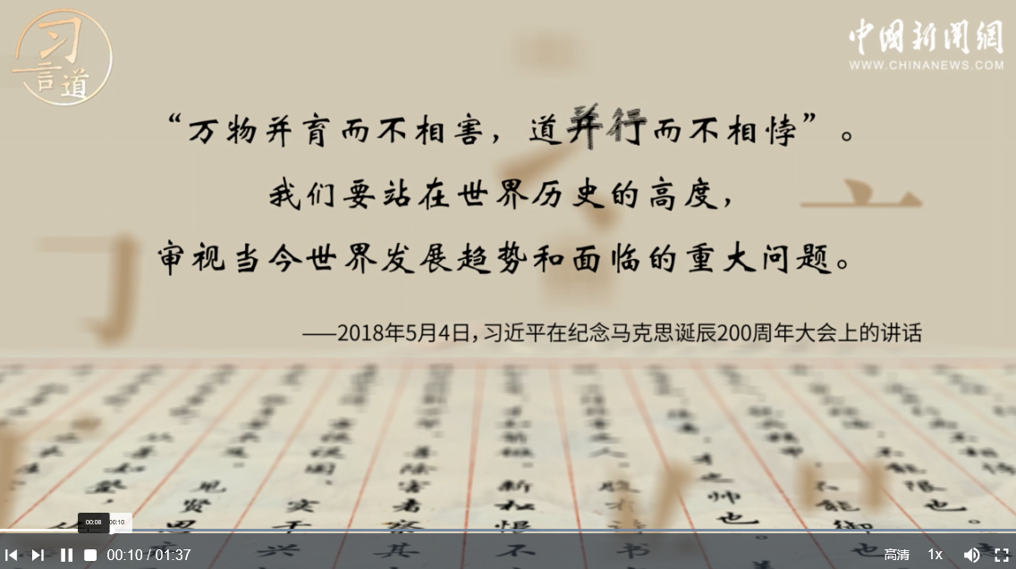 “和而不同”是中國人幾千年來推崇的思想。習(xí)近平引用《中庸》中的“萬物并育而不相害,道并行而不相悖”,強(qiáng)調(diào)要站在歷史高度審視世界發(fā)展趨勢,努力構(gòu)建人類命運(yùn)共同體。一起來跟總書記學(xué)用典。