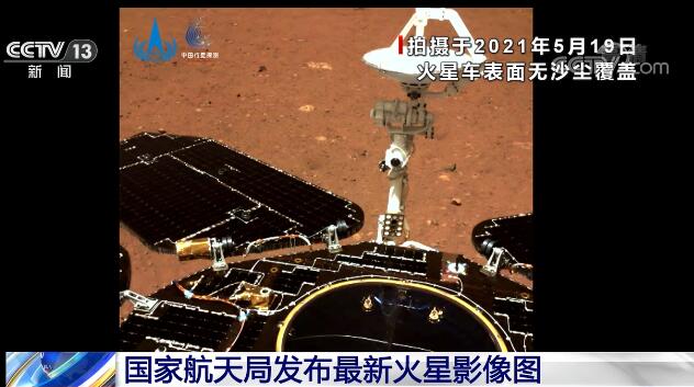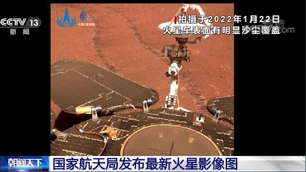 “祝融號”火星車也從火星表面?zhèn)骰刈耘恼眨啾葎倓傊憰r拍的照片,可以看出火星車表面已積累了一層薄薄的沙塵。同時,通過火星車的遙測信息判斷,太陽翼的發(fā)電效率受到一定影響,但能源仍然充足。為了應(yīng)對沙塵覆蓋,火星車太陽翼進行了特殊設(shè)計,可采取多種措施應(yīng)對沙塵引起的發(fā)電效率下降問題,目前尚無需使用,當(dāng)前能源狀態(tài)足以支持火星車繼續(xù)行駛并開展探測。