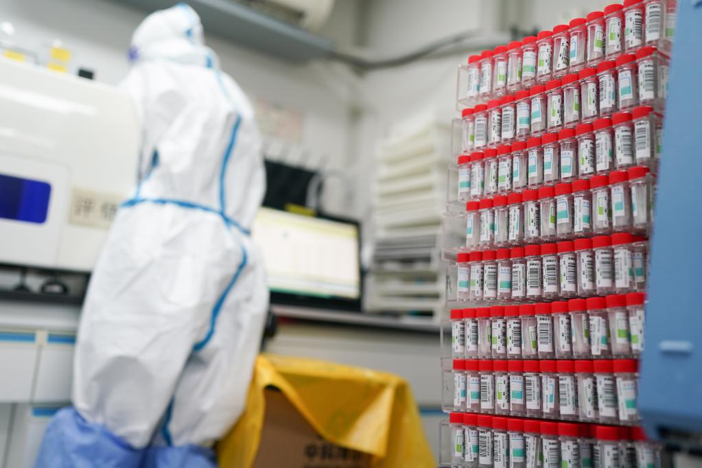 工作人員在進(jìn)行核酸檢測(cè)工作(新華社記者丁汀攝)