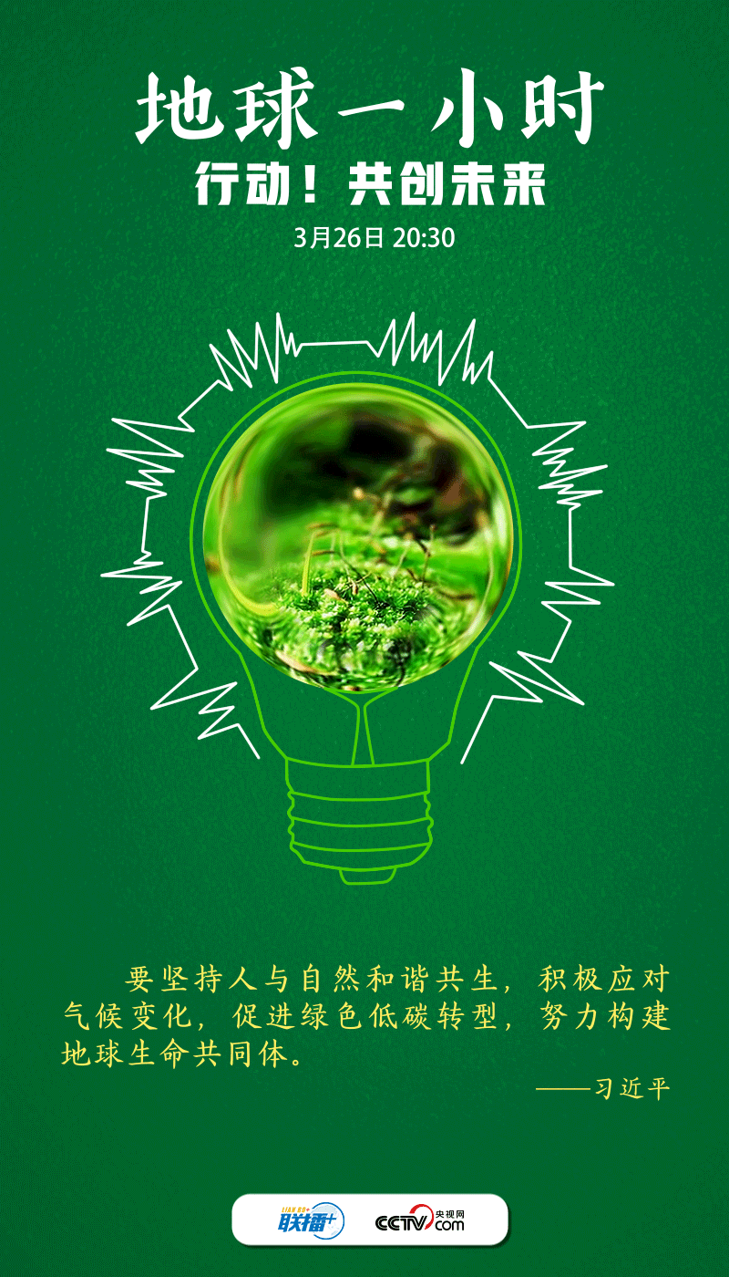 保護(hù)地球不止一小時。央視網(wǎng)《聯(lián)播+》梳理總書記相關(guān)論述,邀您一起“節(jié)”盡所“能”,爭當(dāng)?shù)厍蚣覉@呵護(hù)者、綠色生活理念傳播者、低碳生活方式踐行者,為建設(shè)綠色新家園多作貢獻(xiàn)。