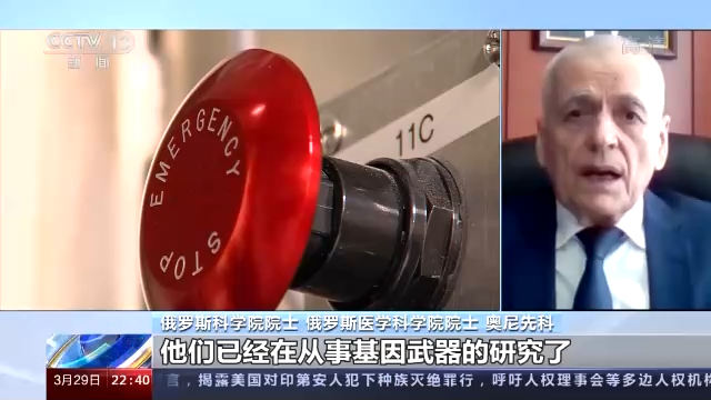 3月28日,中央廣播電視總臺記者對現(xiàn)年72歲的俄羅斯科學院院士、俄羅斯醫(yī)學科學院院士奧尼先科進行了獨家專訪。奧尼先科是俄羅斯的流行病學專家,同時也是最早對美國在俄周邊國家設(shè)立生物實驗室發(fā)出警告的科學家之一。