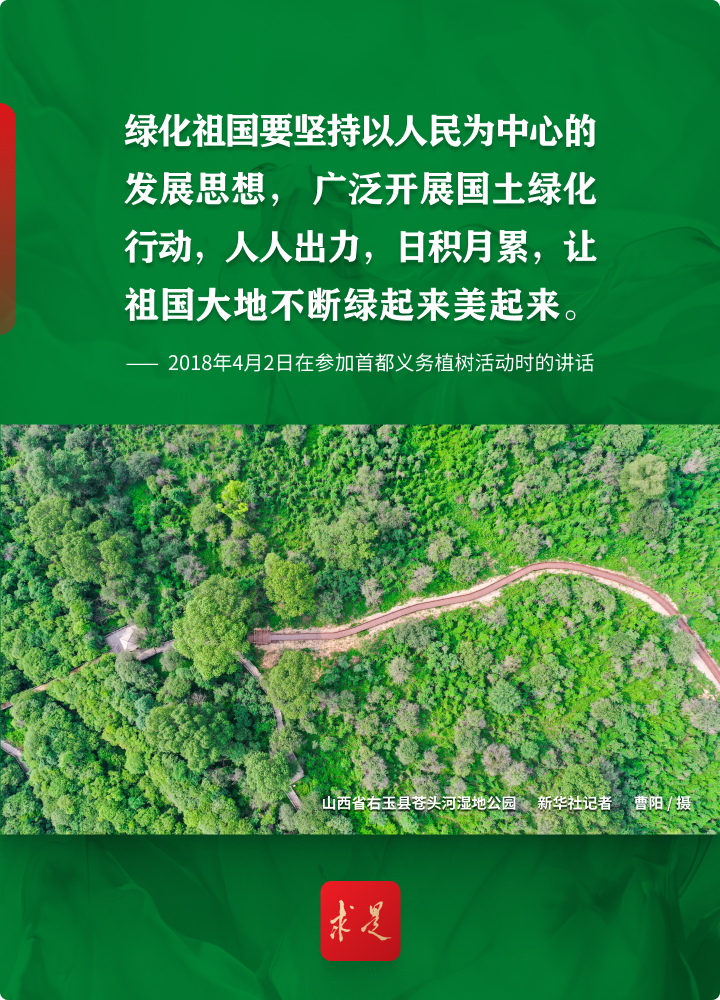 2022年3月30日上午,習(xí)近平總書(shū)記在參加首都義務(wù)植樹(shù)活動(dòng)時(shí)強(qiáng)調(diào),全社會(huì)都做生態(tài)文明建設(shè)的實(shí)踐者、推動(dòng)者,讓祖國(guó)天更藍(lán)、山更綠、水更清、生態(tài)環(huán)境更美好。黨的十八大以來(lái),習(xí)近平總書(shū)記連續(xù)10年同干部群眾一起參加首都義務(wù)植樹(shù),率先垂范、身體力行,大力倡導(dǎo)人人愛(ài)綠植綠護(hù)綠的文明風(fēng)尚,引導(dǎo)人們樹(shù)立植樹(shù)造林、綠化祖國(guó)的責(zé)任意識(shí),形成全社會(huì)的自覺(jué)行動(dòng),共同建設(shè)人與自然和諧共生的美麗家園。我們梳理了黨的十八大以來(lái)習(xí)近平總書(shū)記參加首都義務(wù)植樹(shù)活動(dòng)時(shí)的重要講話金句,一起來(lái)學(xué)習(xí)!