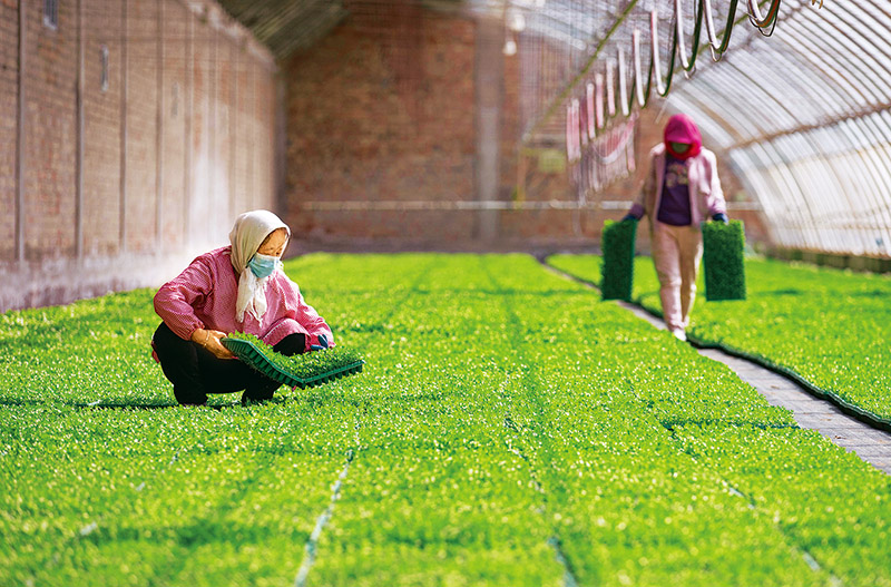 地處黃土高原的寧夏固原市原州區(qū)彭堡鎮(zhèn)姚磨村,近年來因地制宜發(fā)展冷涼蔬菜產(chǎn)業(yè),助力鄉(xiāng)村振興。圖為2022年3月18日姚磨村農(nóng)戶在育苗棚內(nèi)勞作。 新華社記者 楊植森/攝