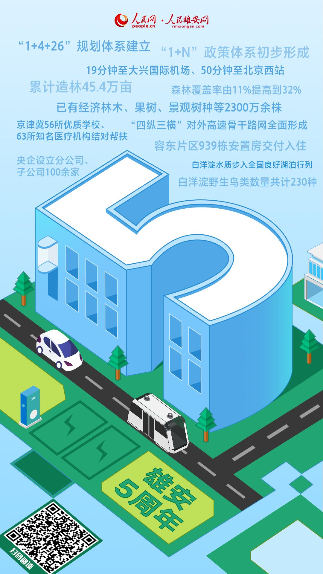 通車的京雄高鐵,拔地而起的建筑,日新月異的城市景觀……5年來,雄安發(fā)生了翻天覆地的變化。今天,是雄安新區(qū)設(shè)立5周年,一張長圖帶你看這里發(fā)生的巨變!