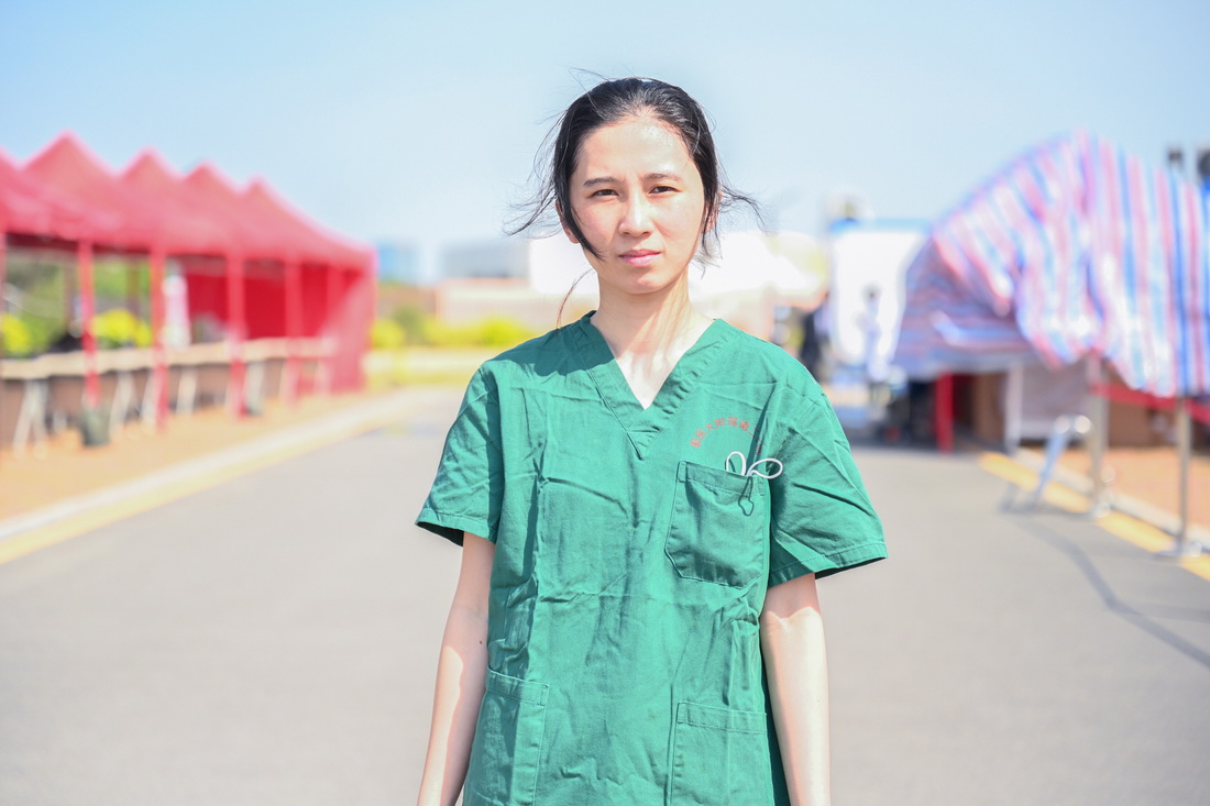 3月29日,在山東省濱州市惠民縣胡集鎮(zhèn)陳集衛(wèi)生院,朱夢(mèng)瑤簡(jiǎn)單整理后露出笑容。新華社發(fā)(王軍攝)