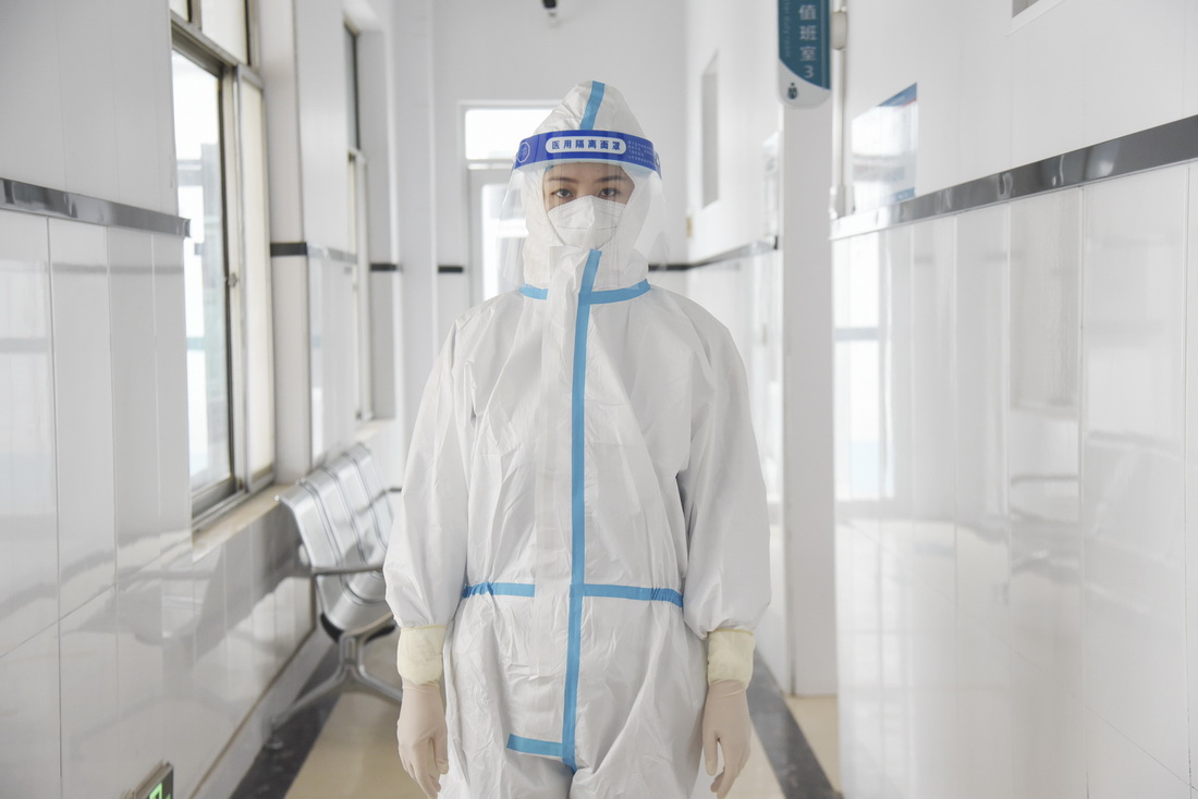 3月29日,在山東省濱州市惠民縣胡集鎮(zhèn)陳集衛(wèi)生院,朱夢(mèng)瑤穿好隔離服準(zhǔn)備出發(fā)。新華社發(fā)(王軍攝)