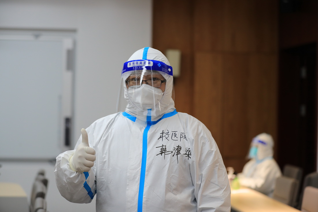 40歲的韓津梁,是吉林大學(xué)校醫(yī)院放射線科醫(yī)生。長(zhǎng)春遭遇本輪疫情以來,他已連續(xù)兩周堅(jiān)守在校內(nèi)核酸檢測(cè)崗位,為疫情防控貢獻(xiàn)一份心力。