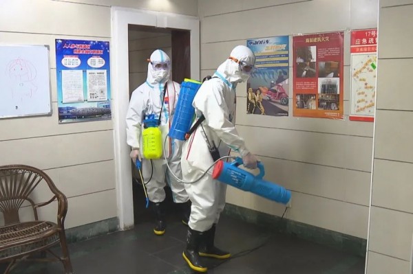 4月8日上午九點,一輛消防車停在同濟綠園門口。曹雷、夏奧華兩人下了車,但他們穿的可不是火場里的隔熱服,而是穿上了“大白”防護服,背著沉重的消毒液。