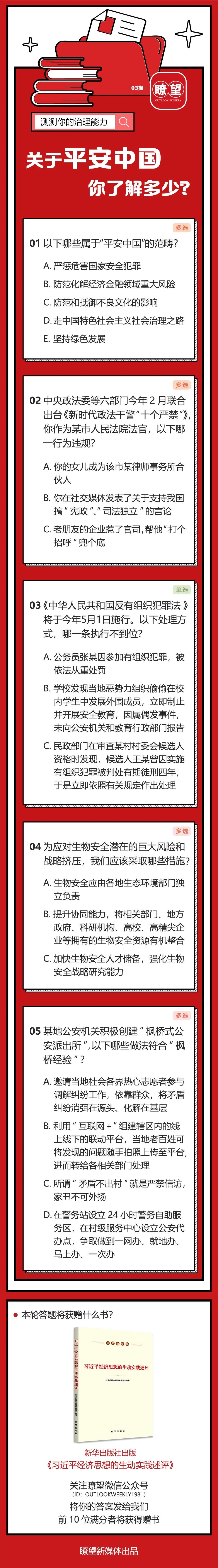 社會治安,直接關乎人民安居樂業(yè)。作為一個有著14億人口、幅員遼闊的發(fā)展中大國,這是一份世界矚目、人民滿意的平安中國“成績單”——