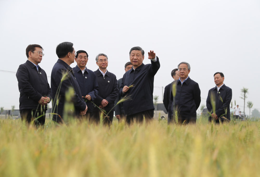 ↑2021年5月14日上午,中共中央總書(shū)記、國(guó)家主席、中央軍委主席習(xí)近平在河南省南陽(yáng)市主持召開(kāi)推進(jìn)南水北調(diào)后續(xù)工程高質(zhì)量發(fā)展座談會(huì)并發(fā)表重要講話。這是座談會(huì)前,習(xí)近平于13日在考察途中臨時(shí)下車(chē),走進(jìn)一處麥田察看小麥長(zhǎng)勢(shì)。