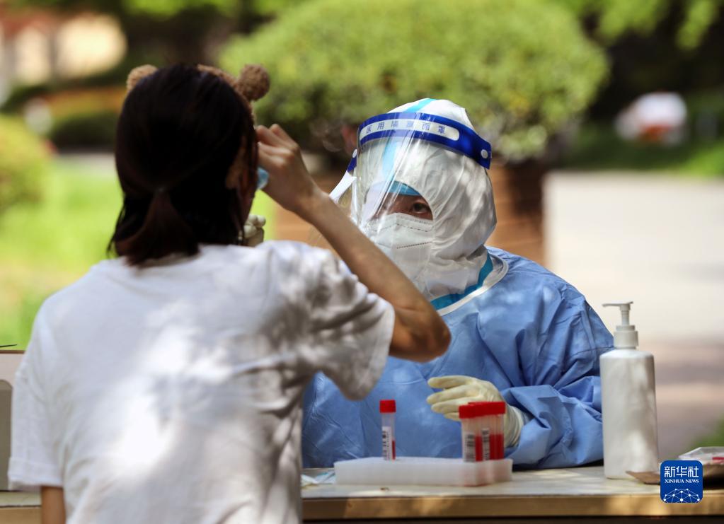 4月12日,在上海松江區(qū)一被列為封控區(qū)的居民小區(qū)內(nèi),醫(yī)務(wù)人員在進(jìn)行核酸檢測采樣。新華社記者 劉穎 攝