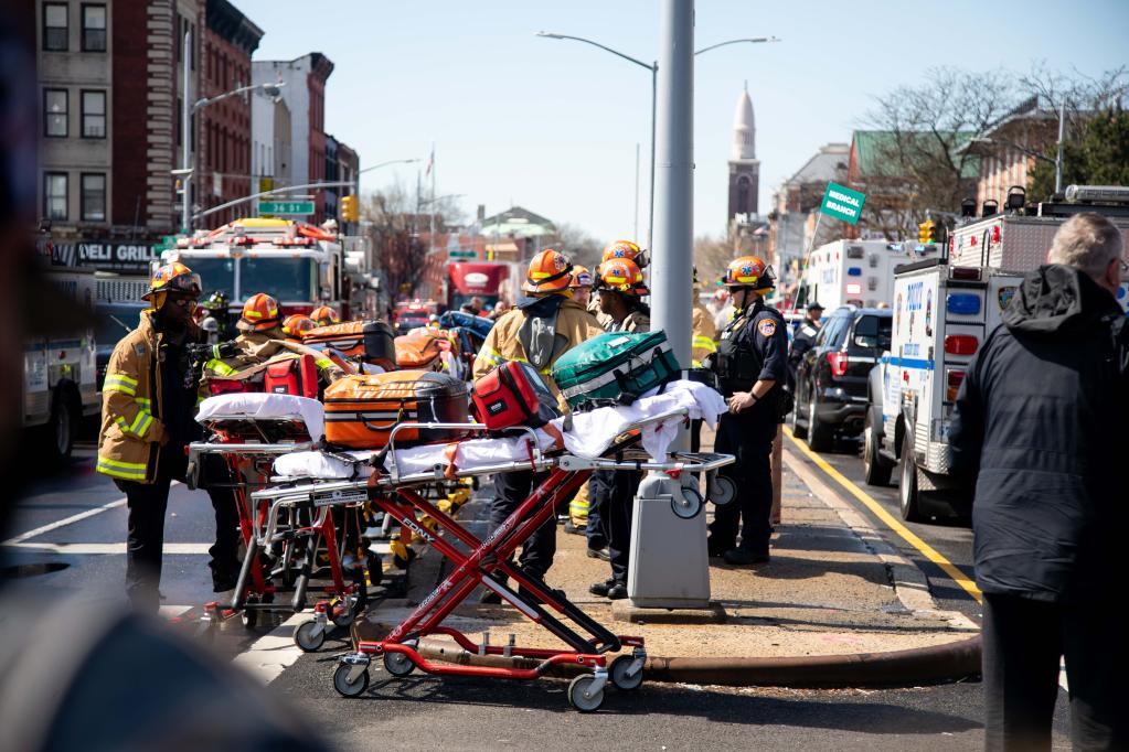 4月12日,救護(hù)人員在美國紐約發(fā)生槍擊的地鐵站附近工作。新華社發(fā)(郭克攝)