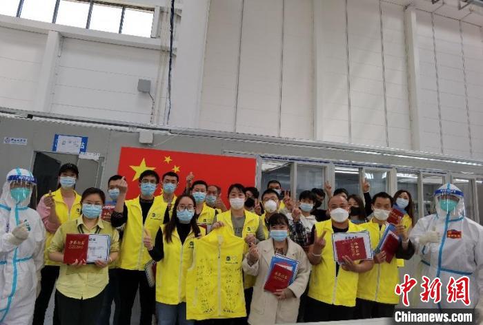 方艙醫(yī)院內(nèi)人員合影 受訪者供圖