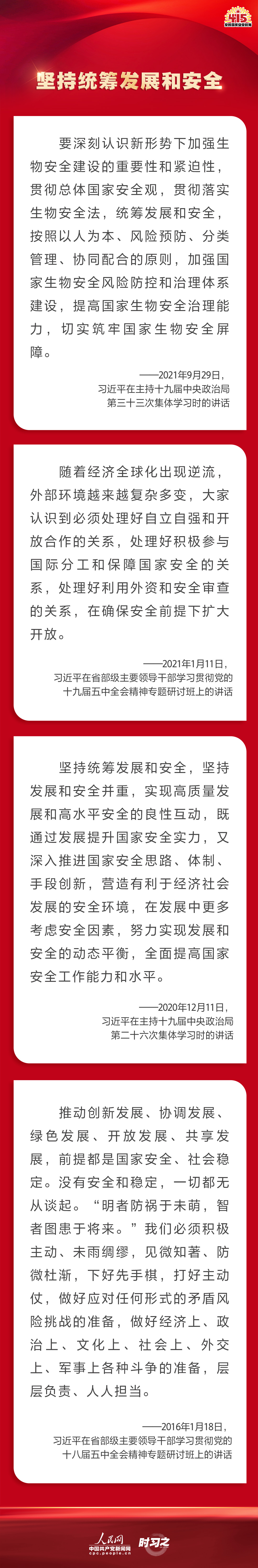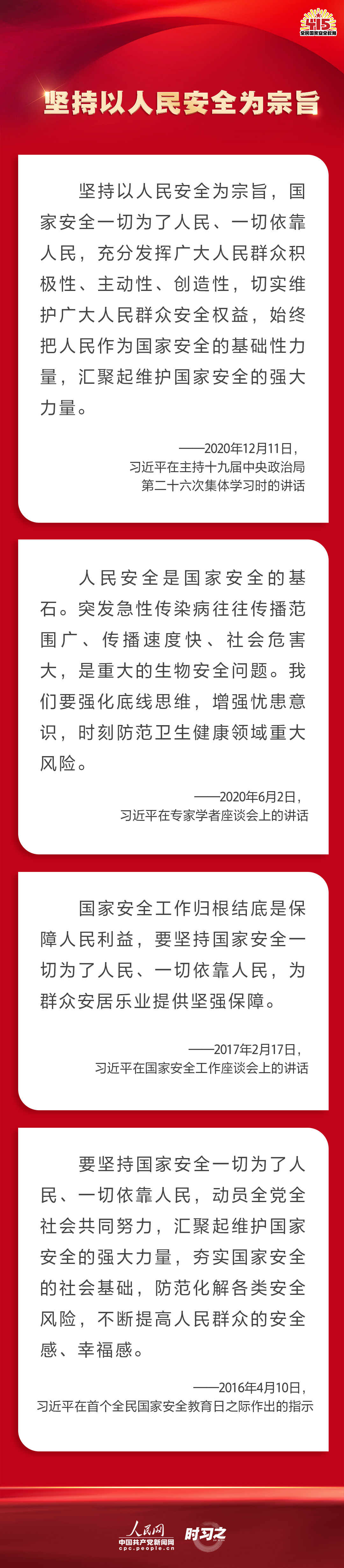備豫不虞,為國常道。實(shí)現(xiàn)中華民族偉大復(fù)興的中國夢,保證人民安居樂業(yè),國家安全是頭等大事。2022年4月15日是第七個全民國家安全教育日,讓我們一起回顧習(xí)近平總書記在不同場合就維護(hù)、筑牢國家安全觀發(fā)表的一系列重要論述,增強(qiáng)維護(hù)國家安全的責(zé)任感、使命感、緊迫感。
