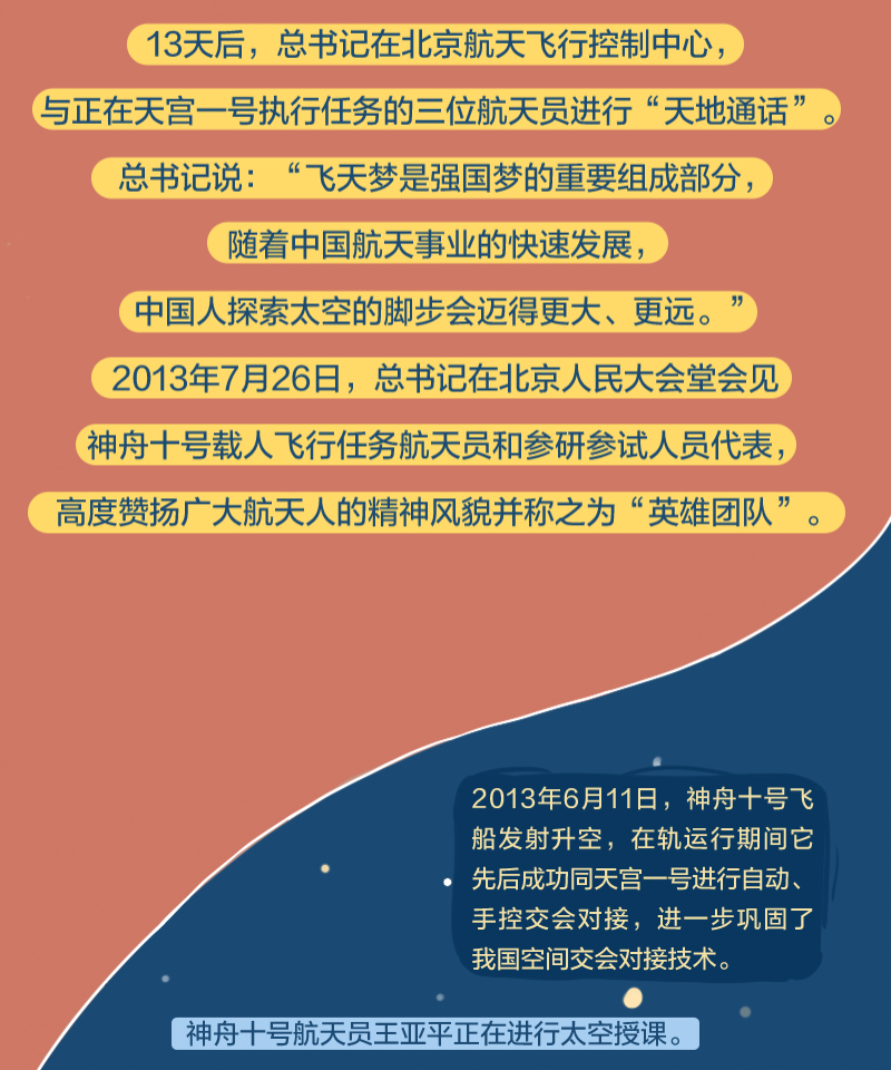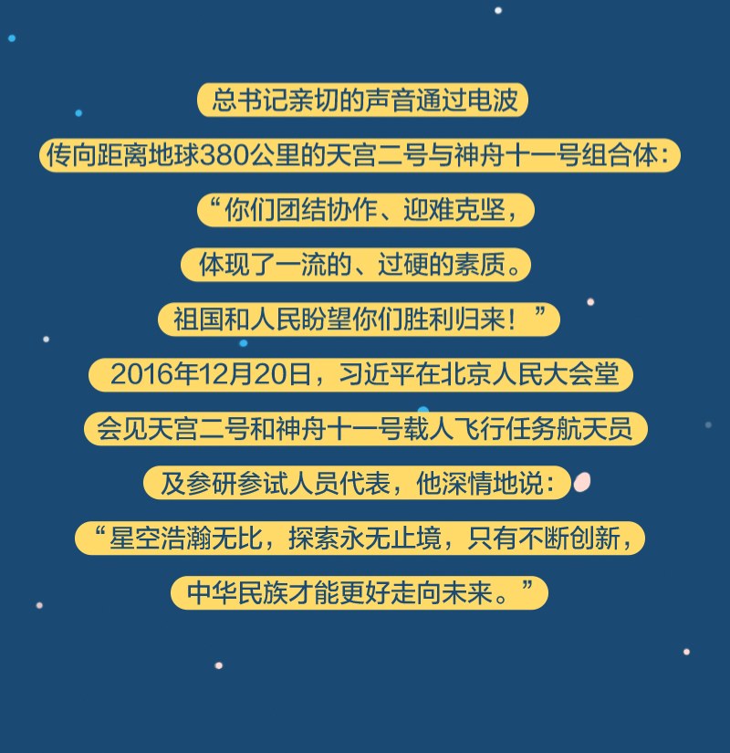 黨的十八大以來,總書記始終高度關注我國航天事業(yè)發(fā)展,多次同執(zhí)行任務的航天員展開“天地通話”、給參與“東方紅一號”任務的老科學家回信、親切接見航天工作者、深情寄語航天人……