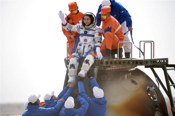 2022年4月16日9時56分,在太空遨游半年的神舟十三號飛船在東風著陸場平安降落,太空“出差”的3名航天員翟志剛、王亞平、葉光富安全順利出艙,重回地球的懷抱。